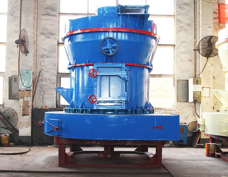 工作時,將需要粉碎的方解石從機(jī)罩殼側(cè)面的進(jìn)料斗加入機(jī)內(nèi),依靠懸掛在主機(jī)梅花架上的磨輥裝置,繞著垂直軸線公轉(zhuǎn),同時本身自轉(zhuǎn),由于旋轉(zhuǎn)時離心力的作用,磨輥向外擺動,緊壓于磨環(huán),使鏟刀鏟起方解石送到磨輥與磨環(huán)之間,因磨輥的滾動碾壓而達(dá)到粉碎方解石的目的。