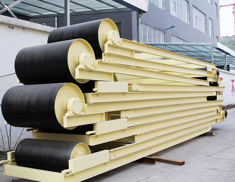 膠帶輸送機(jī)主要由機(jī)架、輸送皮帶、皮帶輥筒、張緊裝置、傳動(dòng)裝置等組成。機(jī)身采用優(yōu)質(zhì)鋼板連接而成 ,由前后支腿的高低差形成機(jī)架,平面呈一定角度傾斜。機(jī)架上裝有皮帶輥筒、托輥等,用于帶動(dòng)和支承輸送皮帶。有減速電機(jī)驅(qū)動(dòng)和電動(dòng)滾筒驅(qū)動(dòng)兩種方式。