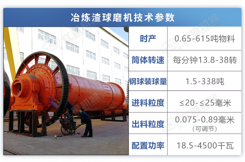 作為筒式旋轉裝置,冶煉渣球磨機的筒體長度、裝球量、時產、進出料粒度、配置功率等是用戶需關注的重點參數(shù),冶煉渣球磨機的技術參數(shù)如下: