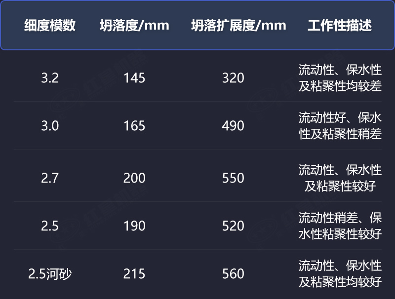 2、機(jī)制砂細(xì)度模數(shù)大于3.0時,新拌機(jī)制砂混凝土和易性差,易出現(xiàn)離析、泌漿及包裹性差等風(fēng)險,細(xì)度模數(shù)小于2.7時,混凝土的流動性降低。