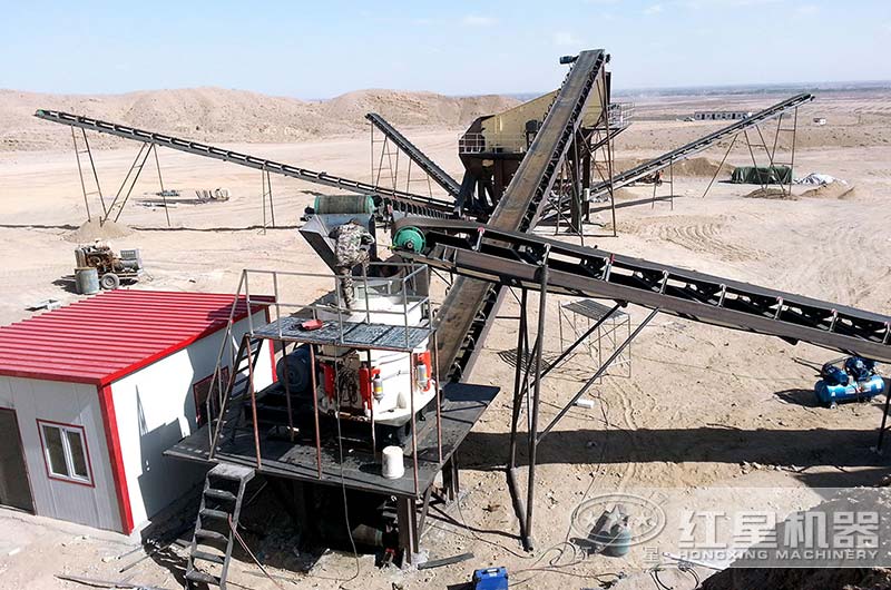 設(shè)備配置:原料倉,振動(dòng)給料機(jī),顎破機(jī),中間料倉,圓錐破,制砂機(jī),洗砂機(jī)振動(dòng)篩(2臺(tái)),輸送機(jī)若干。