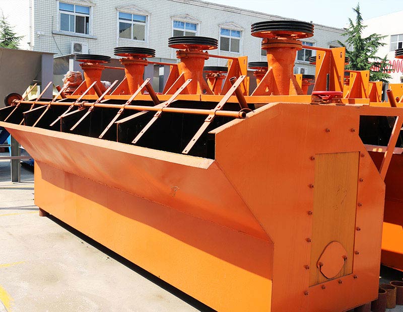 在整個浮選工藝過程中,浮選機(jī)發(fā)揮了心臟作用,浮選機(jī)由電動機(jī)三角代傳動帶動葉輪旋轉(zhuǎn),產(chǎn)生離心作用形成負(fù)壓,一方面吸入充足的空氣與礦漿混合,一方面攪拌礦漿與藥物混合,同時細(xì)化泡沫,使礦物粘合泡沫之上,浮到礦漿面再形成礦化泡沫。調(diào)節(jié)閘板高度,控制液面,使有用泡沫被刮板刮出。