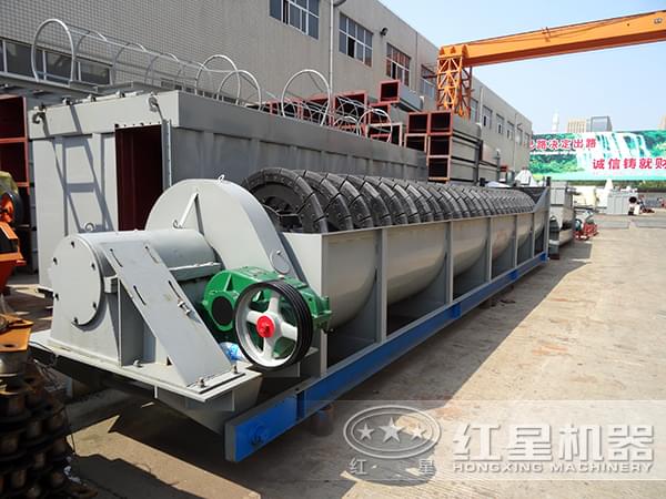 借助固體顆粒的比重不同而在液體中沉淀的速度不同的原理,利用螺旋分級(jí)機(jī)對(duì)礦石混合物進(jìn)行洗凈和分級(jí);